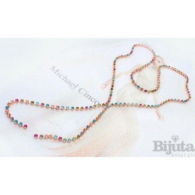 Луксозно позлатено колие, инкрустирано с красиво, фасетирани кристали Swarovski. Нежно, проблясващите кристали са подредени в елегантен наниз, захванат в средата. Моделът е с интересен и уникален дизайн и е подходящ за дами на всяка възраст.Размер: Дължина на цялата лента 80 см.Материал: Медицинска стомана с 18 каратова жълта позлата.Опаковка: Луксозна кутийка и сертификат на марката.